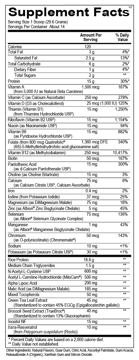 - Promotes detoxification via broccoli seed extract and sulforaphane precursors
